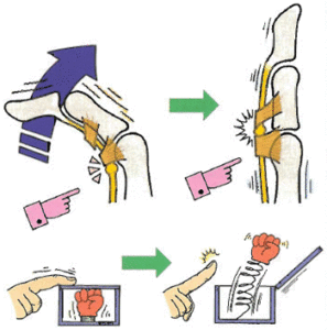 ばね指(弾発指)は、指を曲げる際に使う屈筋腱が腱鞘(けんしょう)と呼ばれるトンネル状の組織で引っかかり、指の動きがスムーズにいかなくなる疾患です。指の付け根に痛みや腫れを感じたり、指を曲げた際に「カクッ」と引っかかるような症状が現れます。更年期以降の女性や、手を頻繁に使う職業の方、糖尿病患者に多く見られます。