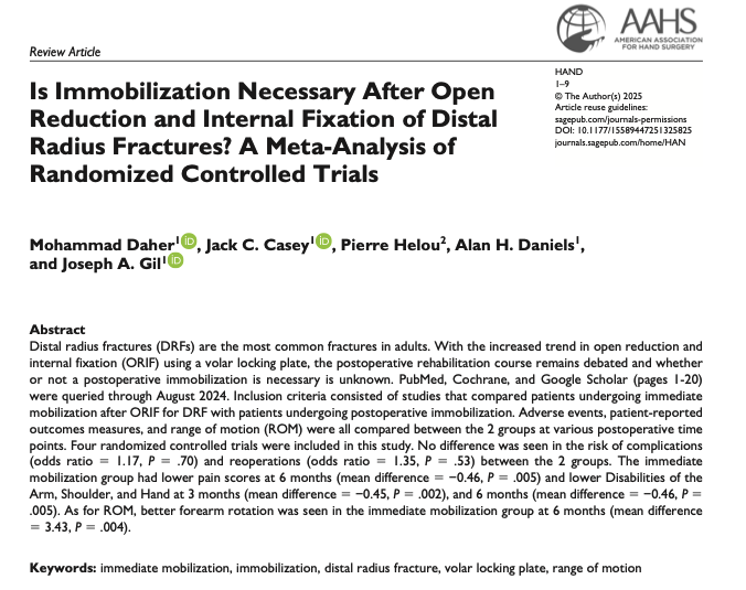 今回の結果は、掌側ロッキングプレートを用いたDRF ORIF後のリハビリにおいて、早期リハビリ開始が有力な選択肢であることを示しています。