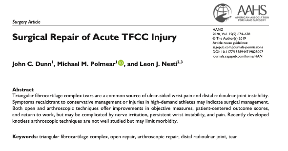 今回は、TFCC損傷に対する手術をまとめた論文をご紹介します。