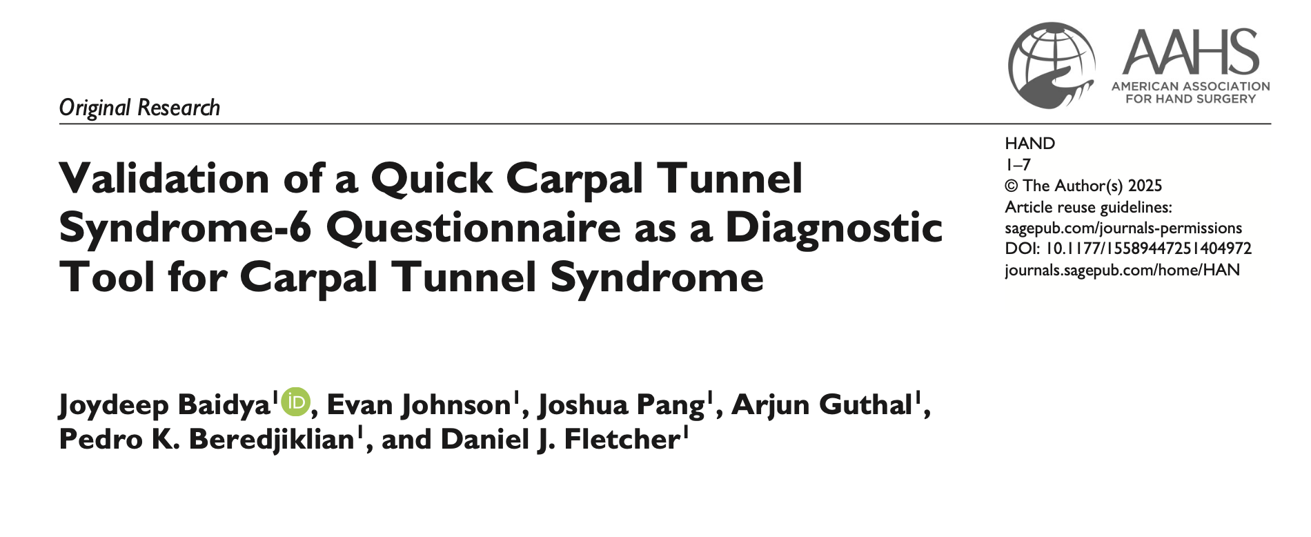 近年、手根管症候群を外来で簡単に診断するためのスコアが研究されています。 その代表が CTS-6 と呼ばれる診断ツールです。
