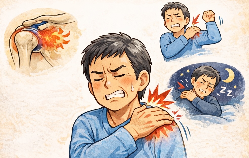 こうした症状がある場合、単なる「肩こり」や「年齢による痛み」ではなく、肩の中の炎症や滑りの悪さが隠れている可能性があります。